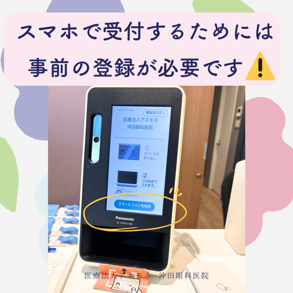 スマホでマイナ保険証の受付が可能になりました。 2025.10.19 お知らせ ※ご利用には事前の登録が必要です マイナ保険証の情報を登録したスマートフォンを使って、沖田眼科医院の受付が可能になりました。"スマートフォンを利用"ボタンを押して、AndroidかiPhoneかを選択し、スマホ内のマイナンバーカード情報を呼び出した状態で白い読み取り機にかざすと受付が完了します📱一度登録いただくと、スマホをかざすだけで受付完了できます。患者様がより便利に、安心して通院できる環境づくりを進めてまいります💐 前ページへ戻る